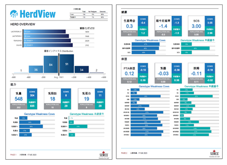 ゲノム検査結果、もしくは血統から推定した遺伝的評価値により牛群の弱点を分析。