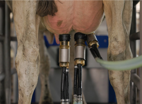 ミルクラインには、各乳房に直径19mmのミルクホースを採用。真空圧変動を抑えることで乳房の負担の少ない安定した搾乳プロセスを提供します。また、乳房ごとに乳量・真空圧・血乳・伝導率を検知するセンサーを配置。データをリアルタイムで酪農家のスマホ端末に送信され状況を確認することができます。