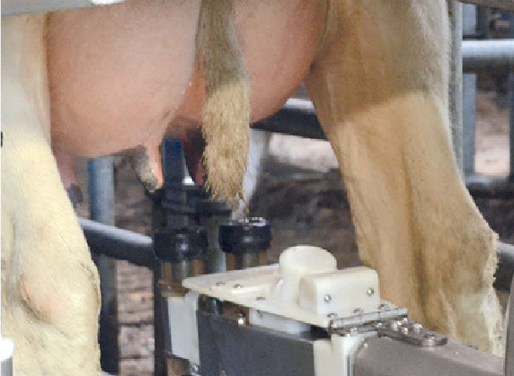 特許を取っている後方取り付け搾乳は、パラレルパーラーと同様の搾乳プロセスを提供。作業動線の短縮、動物福祉、機器の汚損保護の面で優れた特徴を持っています。蹴り落としによる機器の破損のリスク低減に加え、アーム動線が短いため1アームで2頭搾乳が可能です。