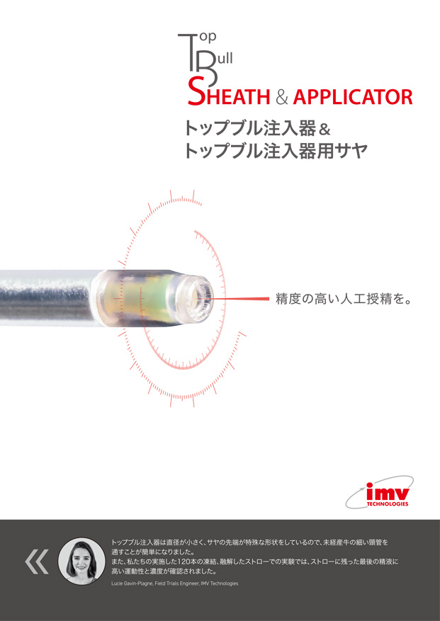 トップブル注入器とトップブル注入器用サヤは、より正確に、効率的な人工授精を望んでいるエキスパート向けの注入器とサヤです。トップブル注入器はトップブル注入器用サヤと共に使用します。